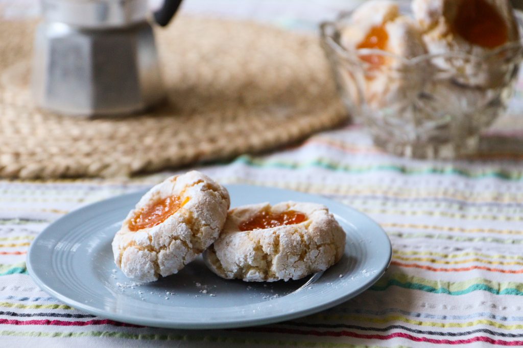 Ricciarelli are a Tuscan biscuit made from meringue and ground almonds. Essentially a drier version of a macaron, they are naturally gluten free. We make a lot of these at the cookery school, Waitrose has a fantastic variation with walnuts and medjool dates which I would highly recommend- recipe can be found here. Nigella Lawson’s recipe is also fantastic, but requires an overnight curing to achieve the outer texture. I first made this variation for a dinner party, trying to replicate some I’d had from a pasticceria in Italy earlier this year. They have a dense, chewy centre with a crisp outer shell and the tangy apricot jam plays really nicely with the slight bitterness of the almonds. I made the mistake of throwing them together without noting anything down. They turned out perfect and I couldn’t remember how. Three subsequent tests later, here we are.